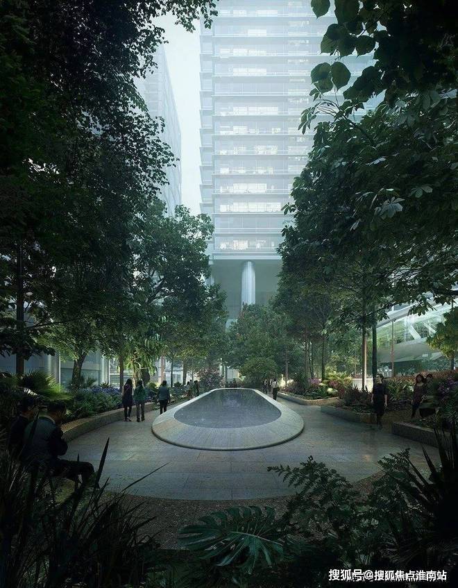 设计特别关注商业与住宅塔楼的交接面,通过景观缓冲区将公共领域和住宅的私属空间分隔开来,以求最大限度地保护居民的隐私,营造安静的居住环境,并削弱后勤和屋顶设备的视觉影响。