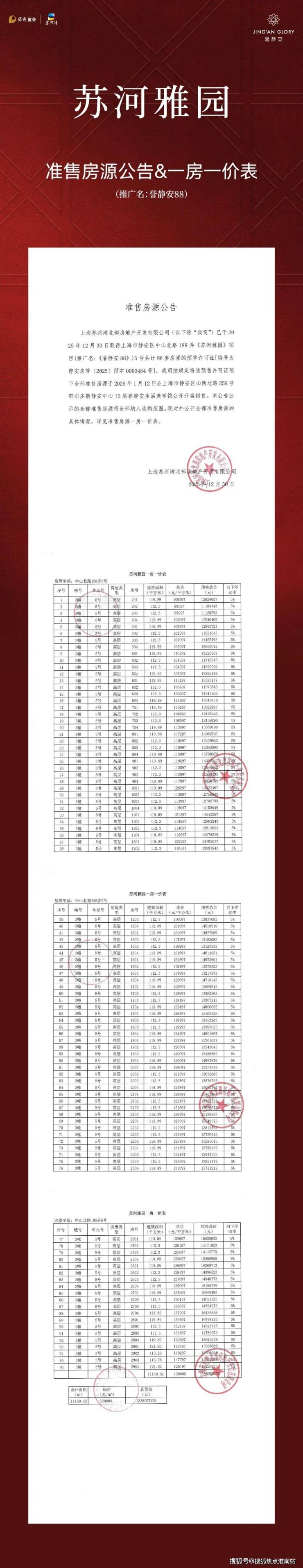 誉静安,静安内环首个“好房子”项目,99&88地块持续热销中。主推建面约112–143㎡ 精装三四房,总价约1100万起 抢占内环苏河湾!实景兑现,创意样板间已开放!