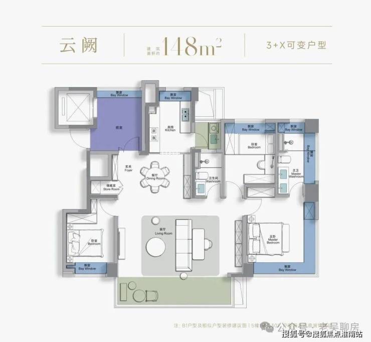 推售建面约104-148㎡3+X房(小高层)