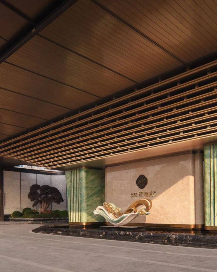 云启钱湾望潮叠墅,以媲美排屋的规划理念,精雕细琢每一处产品细节。外立面采用流线型铝板与全面屏落地玻璃窗相结合,搭配石材基座,质感高级且历久弥新。光影流转间,尽显建筑美学。中式飞檐造型灵动飘逸,与约61米的山水归家超级界面相得益彰,从入口处即彰显顶豪尊崇格调。