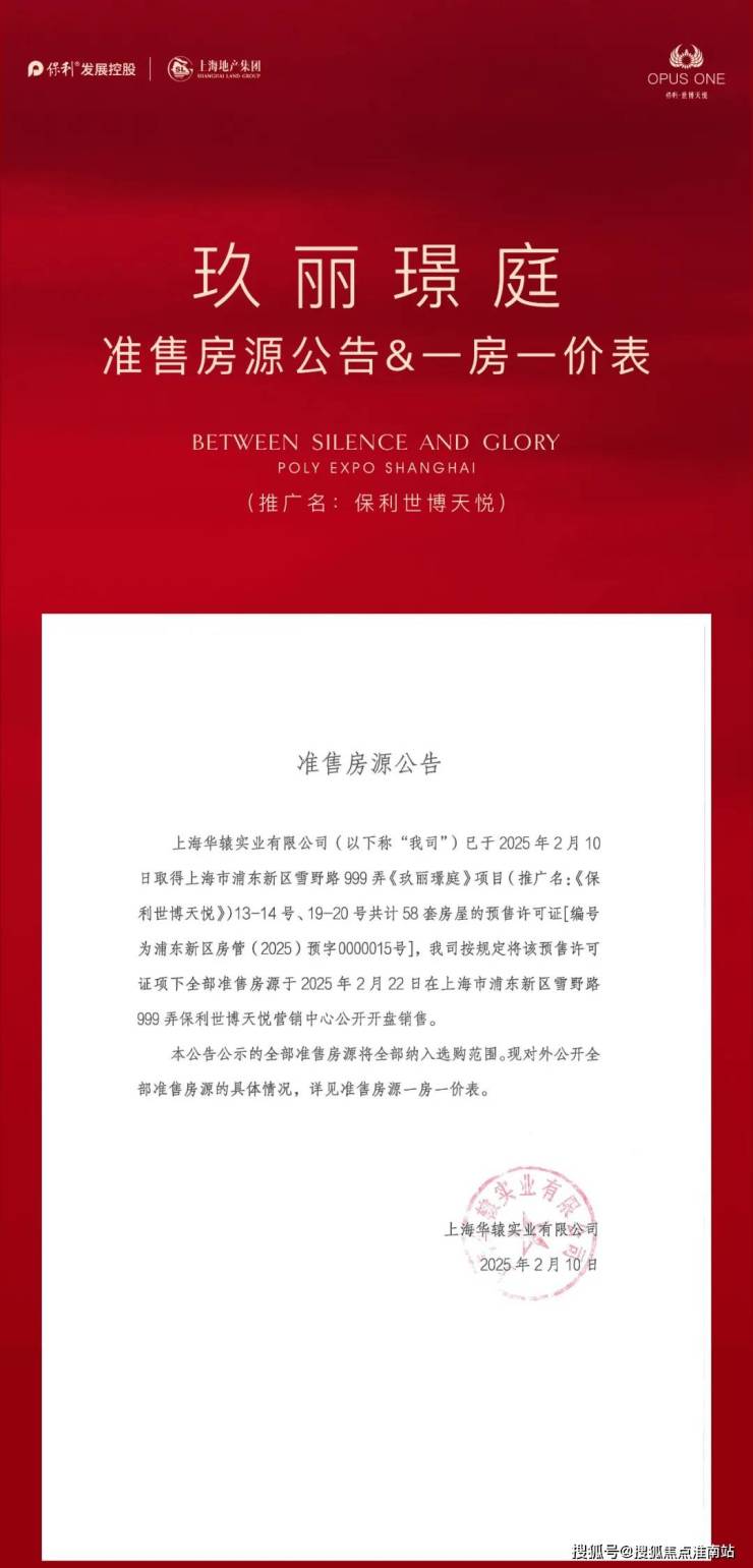 1、项目推广名为“保利·世博天悦”,地名核准名/备案名为“玖丽璟庭”,开发公司为:“上海华辕实业有限公司”;预售证号:浦东新区房管(2025)预字0000015号;2、本资料为要约邀请,不作为要约或承诺;3、相关宣传内容不排除因政府相关规划、规定及出卖人分期规划、未能控制等原因而发生变化;4、买卖双方的权利义务以双方签订的商品房买卖合同及其补充协议、附件等书面文件为准;5、本宣传材料所涉及户型仅供示意参考,具体以政府部门最终审定的图纸和销售合同为准,本资料所涉及面积皆为预估面积,相同户型单位因楼栋、楼层、单元等差异,局部结构、形式、面积、装饰等可能有所不同,且预估面积与实际面积可能存在差异,面积最终以房管局测绘为准。户型图中装修、家具、电器等设备仅为示意,不属于交付内容和交付标准,实际部品的选型和房间空间尺寸根据户型情况,略有差异,以现场实际为准;6、本宣传资料中涉及的价格、折扣、付款方式等信息,因销售时间、户型楼栋、楼层、方位等不同有所差异,以双方签订的商品房买卖合同及其补充协议、附件等书面文件为准;7、本资料所发布的内容为2025年2月的信息,敬请留意最新资料。