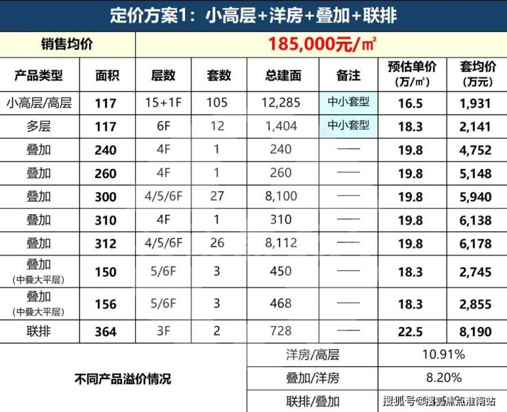 预估均价:高层16.5-17万/㎡,洋房18.3-18.7万/㎡,总价控制在1900-2200万之间;