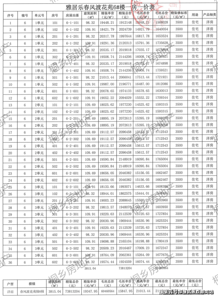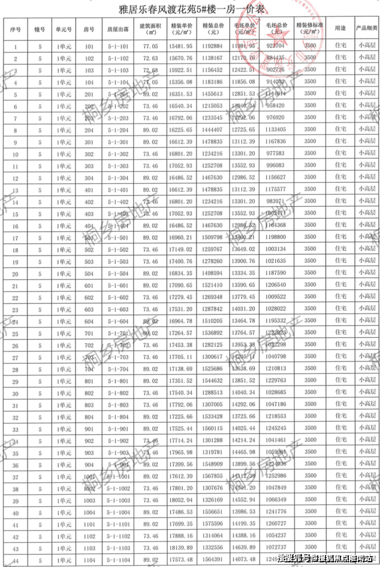 一房一价表
