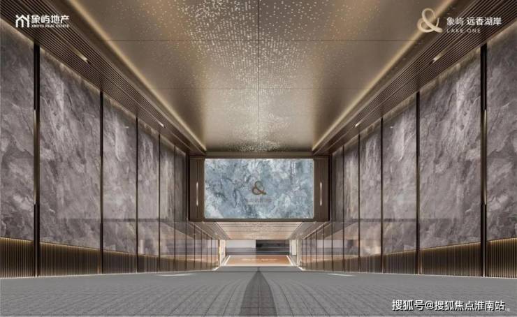 金属与岩板的合奏,双大堂礼遇非凡人生仪式感地下归家大堂,古青玉岩板装点空间,艺术感电梯轿箱,优雅兑现湖岸精英居住气度。