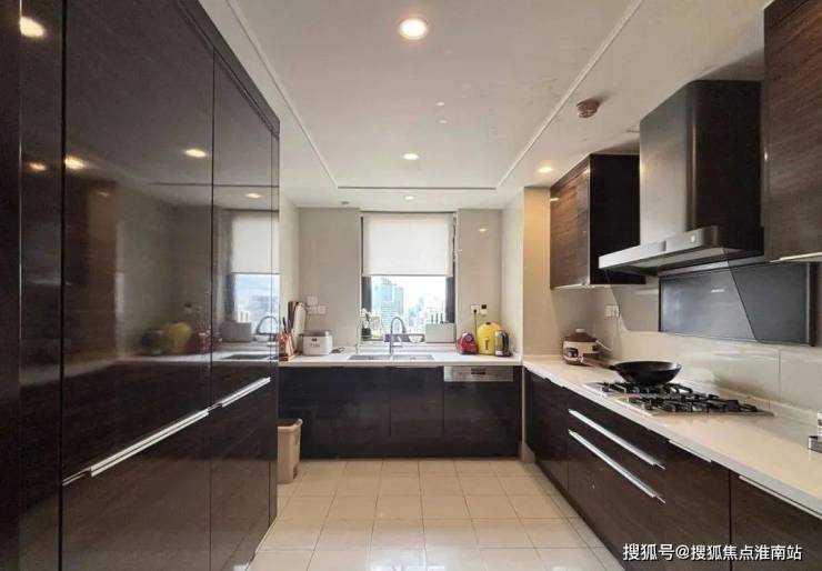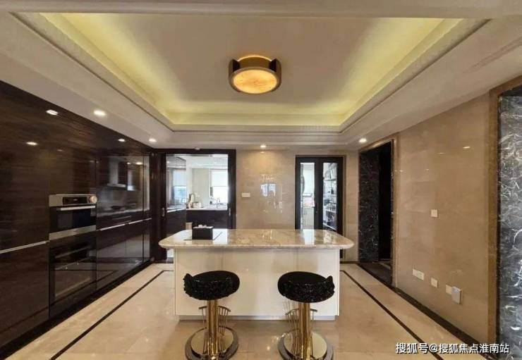 朝南开间搭配大平层露台风景,在 餐厅依然可以享受露台上延伸出去的风景; 岛台与 封闭厨房形成了中西厨一体的格局,宽敞的空间与窗外怡人的风景,令日常烹饪也多了几分灵动意趣。