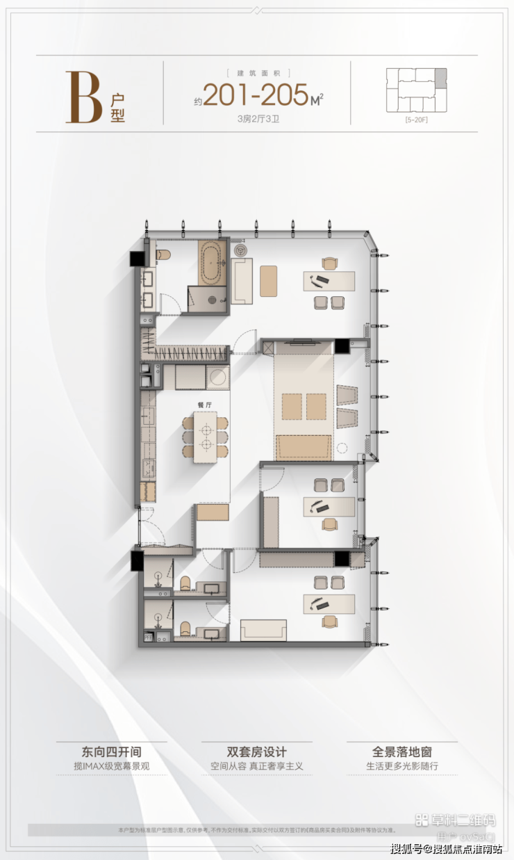 5️⃣户型优势:4.2米层高,全落地窗设计,多套房设计满足三代同堂