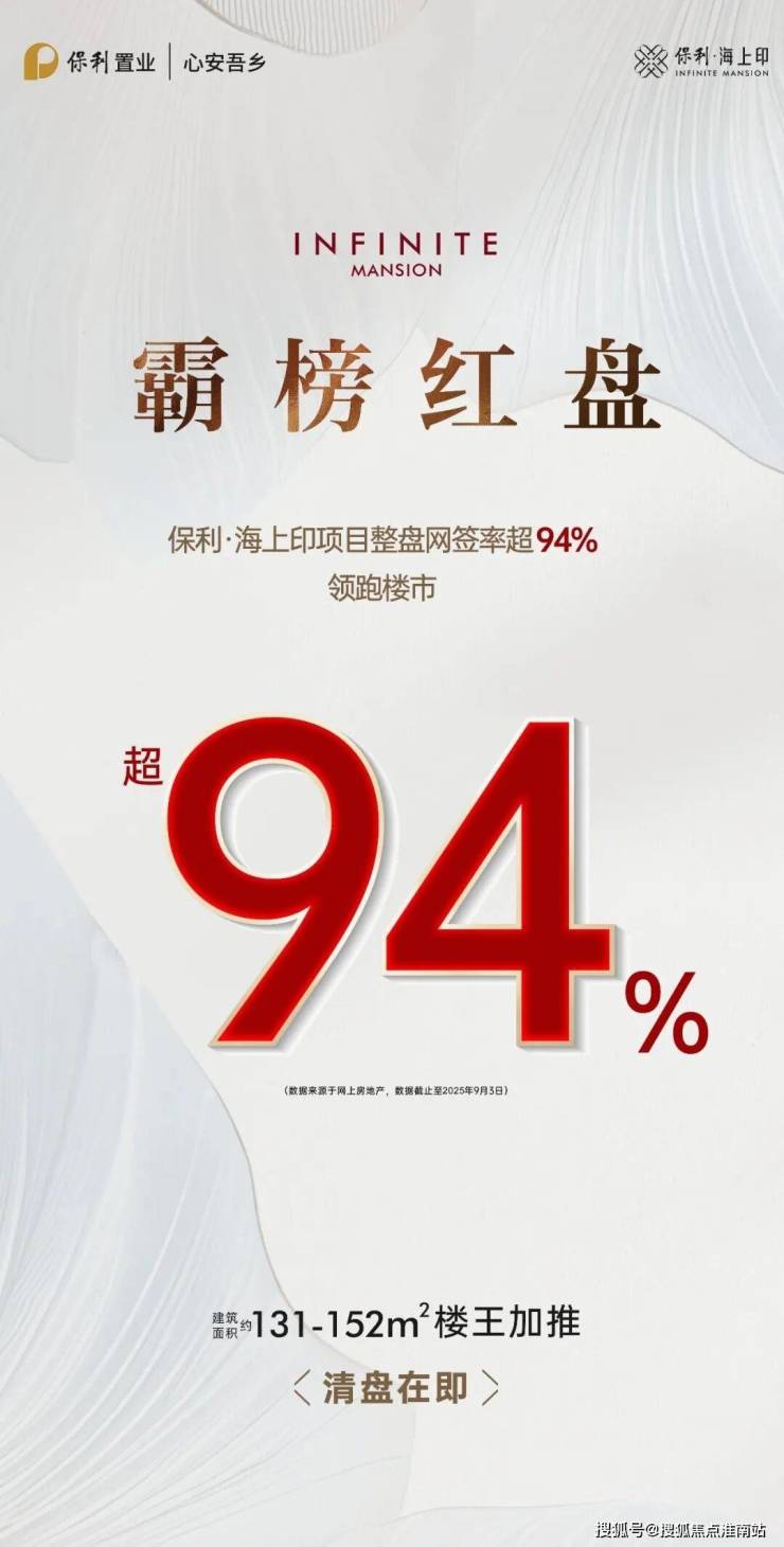 另外,据网上房地产网签数据显示,保利·海上印项目整盘网签率超94%,领跑楼市!告罄不掺水,货真价实的热销盘!