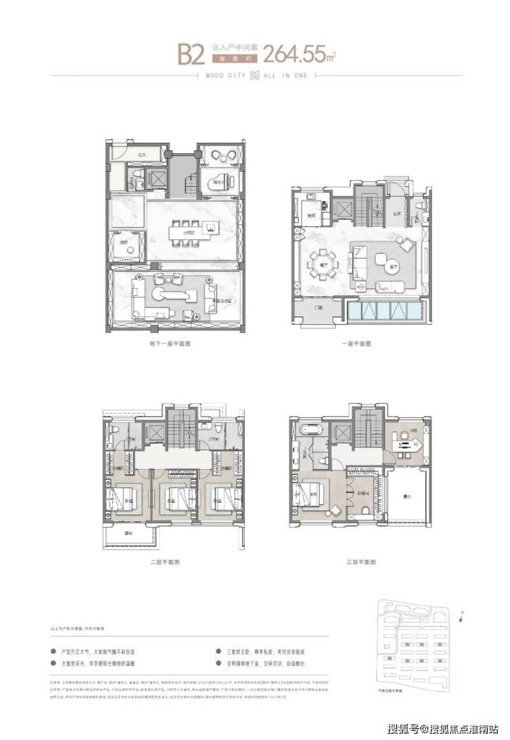 主力面约262~306㎡联排别墅第上三层+地下2层+大花园总价约1398万起目前“样板间”已开放