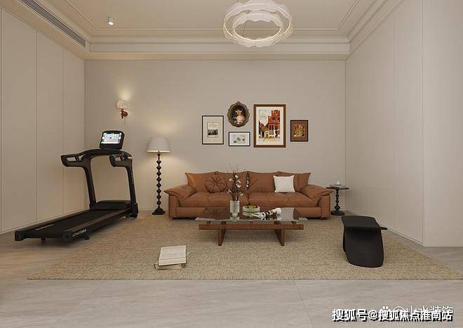 除却休闲与观影功能之外,我们为迎合居住者的个性化需求,在沙发一侧增设了跑步机。功能的丰富放大了生活的精致度,也是高阶生活的具象表达。