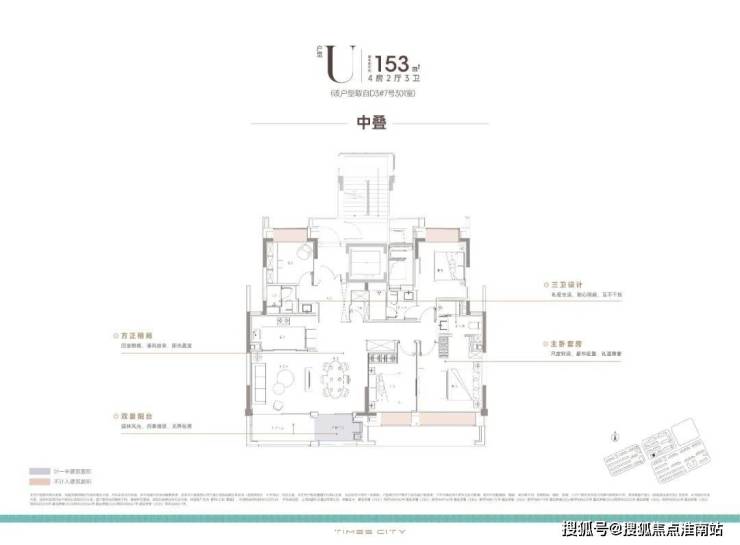 项目的中叠 四开间朝南,超大IMAX的采光面,妥妥市区豪宅大平层的尺度感。
