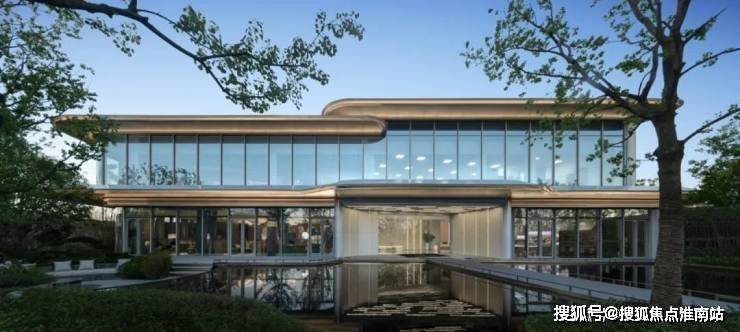 极简线条、大面积玻璃、东方传统飘檐元素打造类剧院式公建化立面