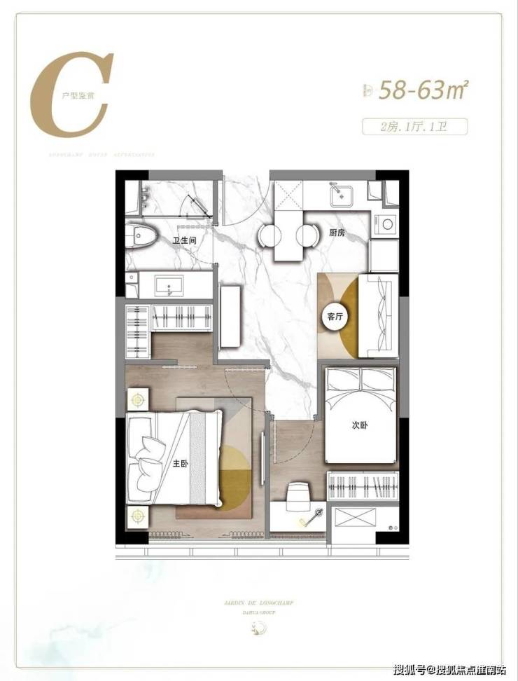 项目将推出建面约59-63-74-77㎡(2房-1厅-1卫)\102-110㎡(3房-2厅-1卫) 总价:约350-580万