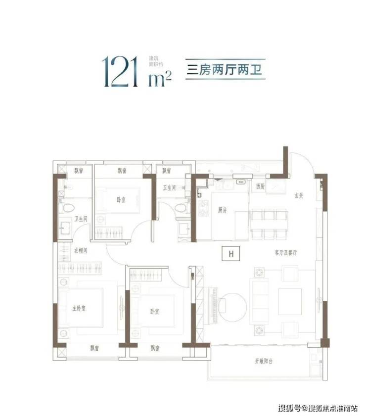 建面约100m²的阳光三房,同等面积更多功能;宽幅南向观景阳台,把居住变成风景;步入式衣帽间,给予生活更多从容。