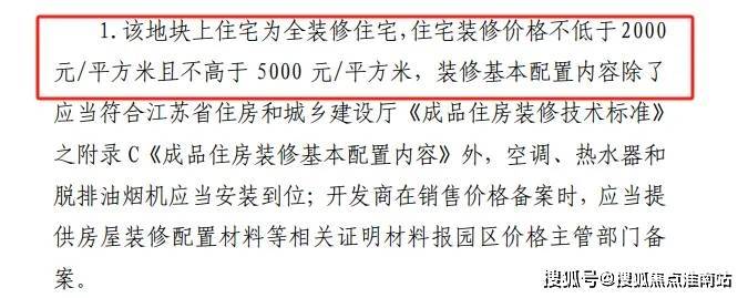 根据地块要求,项目为全装修住宅,住宅装修标准不低于2000元/㎡且不高于5000元/㎡。