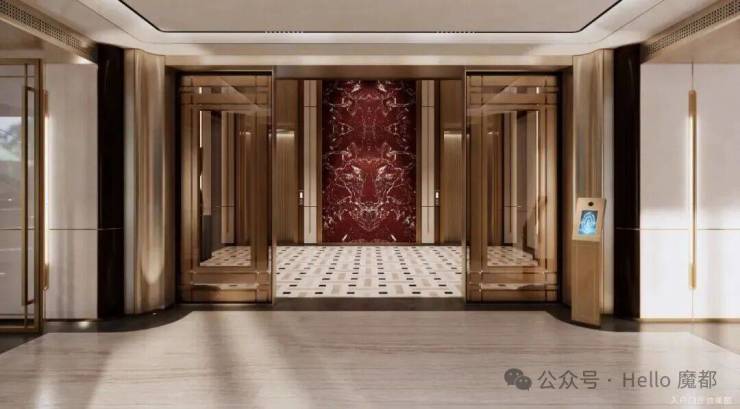 凝练上海城市文化符号,以更多的思考构建生活场景。博埃⾥建筑设计事务所(SBA),用红色大理石为空间注入活力与激情,为住宅设计现代简约的意大利风格大堂。明艳馥郁的红色大理石,献映鎏金时代ArtDeco经典的摩登瑰丽,意式风情&海派精髓交织的精致典雅,于传承与创新中孕育而生。