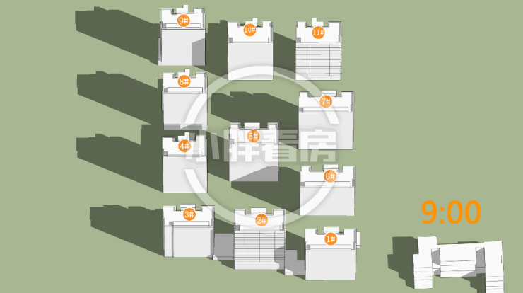 夏至(9-15时)在售楼栋日照时间和动图