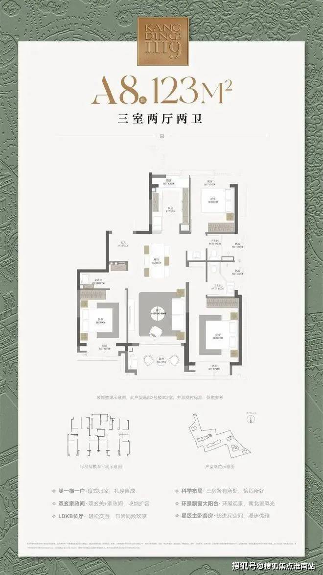 项目推出建面约123-238㎡多元化户型,覆盖三房至四房,满足不同家庭需求.建面约123㎡三房采用飞机式布局,一镜到底的LDKB长厅,尽显隐贵风范;建面约177㎡四房拥有6重采光面,室室皆阳,通透舒适;建面约193㎡户型更是达到豪宅大尺度,私家电梯厅附赠空间、嘉格纳厨电五件套、大面积木饰面装饰,约50㎡客餐厨阳台空间、超8米飘窗,空间感堪比市面上230+㎡户型.