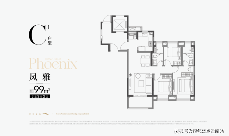 · 建面约99㎡户型则进阶3房2卫,适配对品质有需求的首置或首改客户!