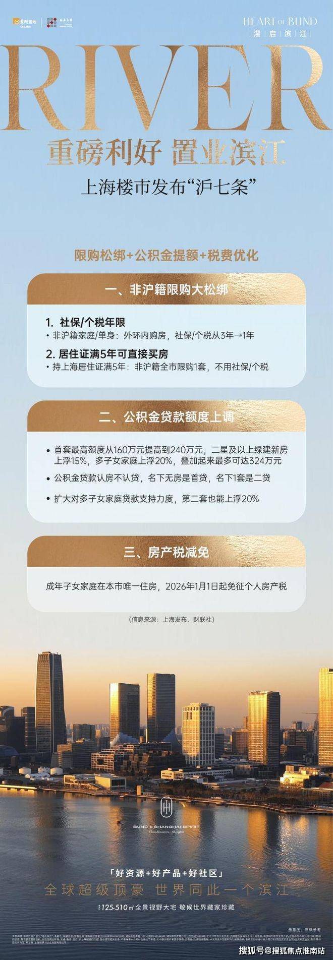 上海云启滨江售楼处电话400-8818-994此次“沪七条” 新政的落地,为云启滨江带来全方位精准利好,与项目客群结构、产品定位、板块属性高度契合。