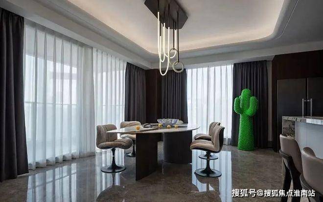 恰到好处的曲线设计,如同行云流水般自然流畅,不仅为就餐区域勾勒出优雅的轮廓,更在无形中增添了几分柔美与温婉。