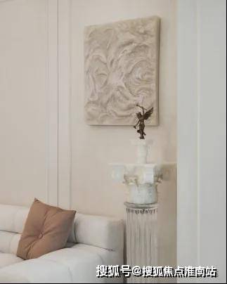 私密场域依旧保持静谧,黑白色基础上搭配了更多的色彩,例如深棕、浅紫等,艺术品的衬托深邃迷人,热络了家的氛围。
