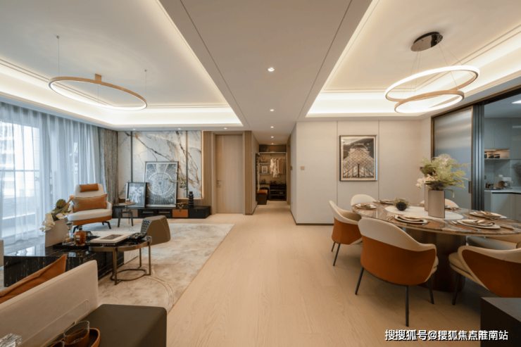 在景观打造方面,项目风格是新海派风格,特点是延续海派文化的典雅格调。整个社区采用“一环”“两轴”“三园”“六院”的空间结构,展现现代海派的精致人居空间。