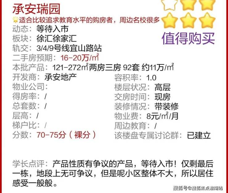 最新消息,徐汇内环「承安瑞园」等待入市!仅剩最后一栋121-272㎡两房三房,共计约92套,均价约11万/㎡!