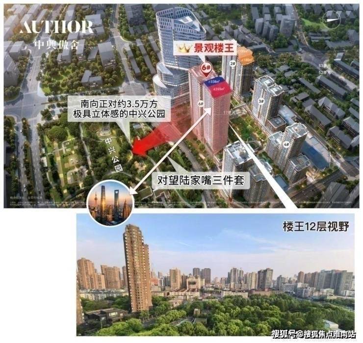 中興傲舍即将加推建筑面积约338/355平楼王,这楼栋南向无遮挡,直面约3.5万方中兴公园,对望陆家嘴三件套。