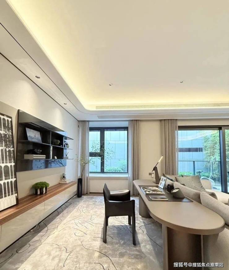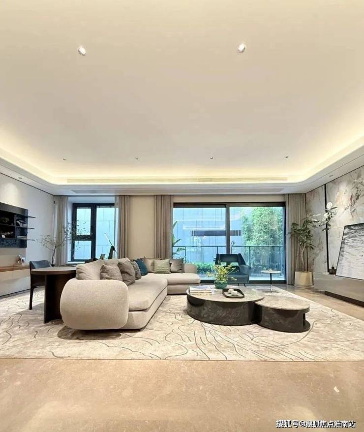 室内设计,秉承摩登东方的理念,设计以人、生活为中心,从空间本体和情感层面都回归生活,270度环幕采光,开放式会客厅设计,兼具尺度感与功能性。