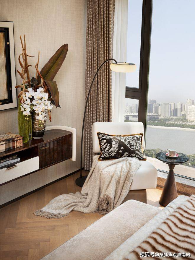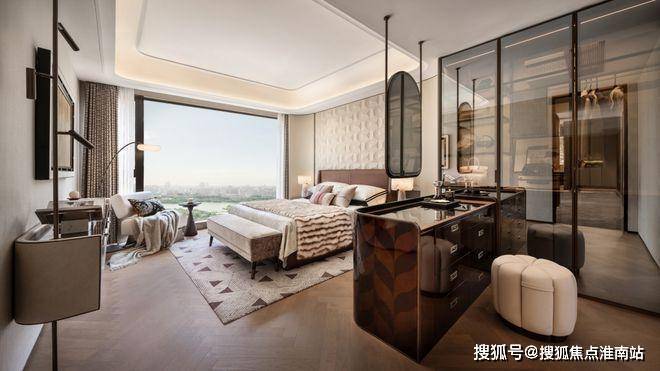 当沙湖最后的涟漪沉入暮色,主卧套房正展开一场与城市喧嚣的温柔对抗。