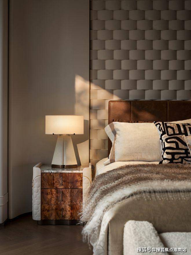 次卧皮革背景墙似被时光轻吻过的绸缎,尽是松弛高级。