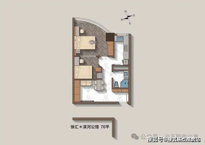 70平精装两房户型