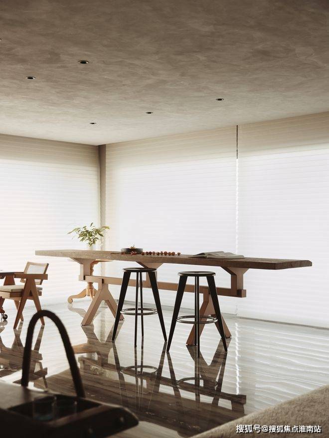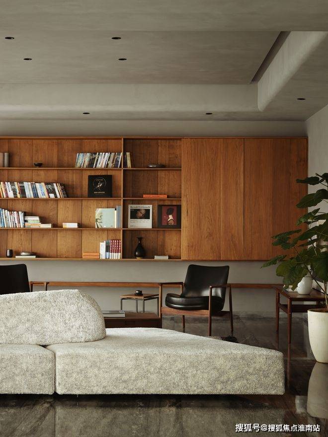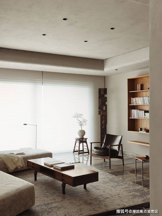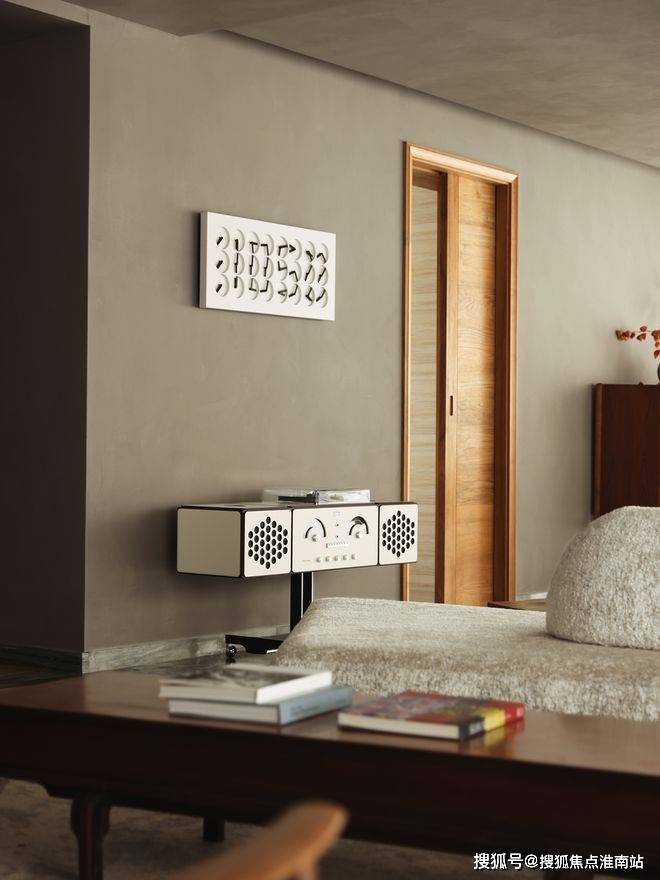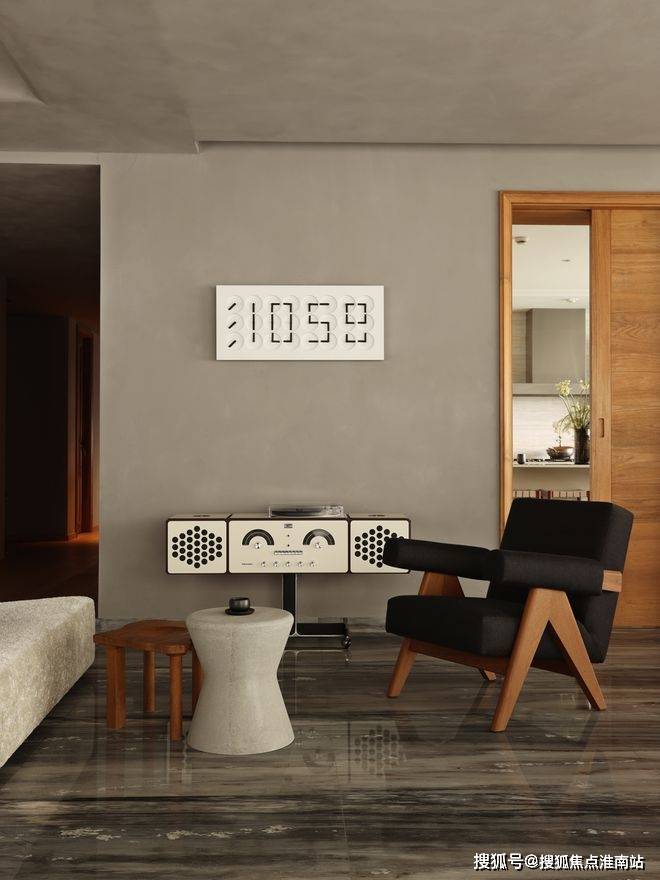 中旅东篱院售楼处电话400-891-9910✔✔✔大面积的灰色,通过原木色的衬托给空间带来温润的质感,个性的家具(Brionvega复古微笑机器人音响,Eternit纤维水泥茶几,Herbst中古木凳,ClockClock跳跃指尖数字钟)成为空间的点缀色。