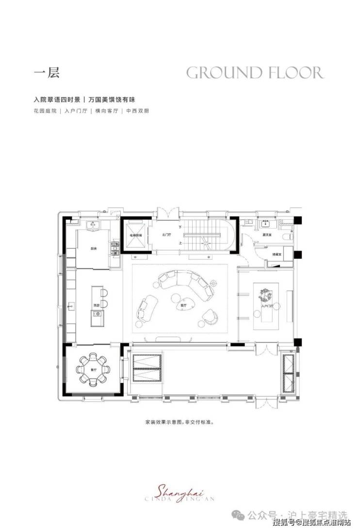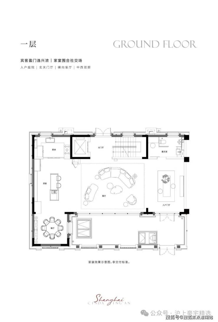 一层藏奢于境,入户门厅,阔绰横厅场域,生活从容尽显