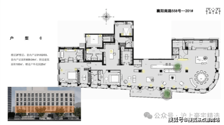 ▲659.04㎡丨4室3厅4卫1花园丨赠送面积100㎡丨赠送户外花园25㎡