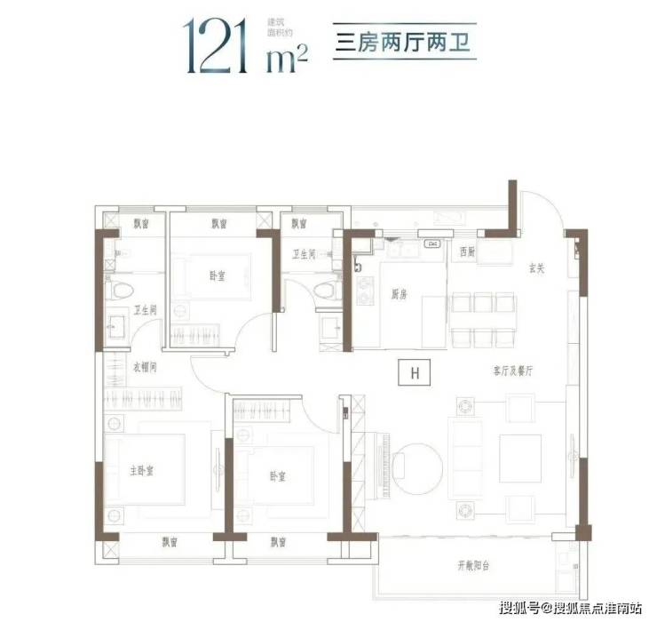 户型特点:3开间朝南,全屋阳光充足;L型厨房转角移门设计,最大化空间视野;四飘窗设计,通透空间享受;动静分区,亲密有度;套房式主卧,容纳私谧生活点滴;