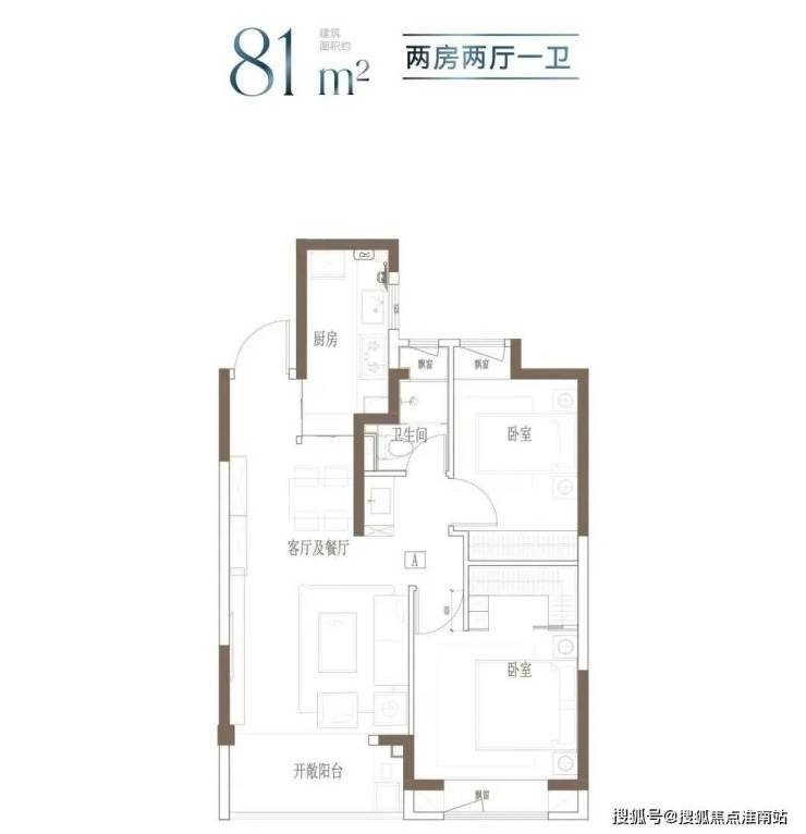 户型特点:小面积,低总价;2房朝南大面宽,舒适生活感受;卧室飘窗设计,释放更多公共空间。