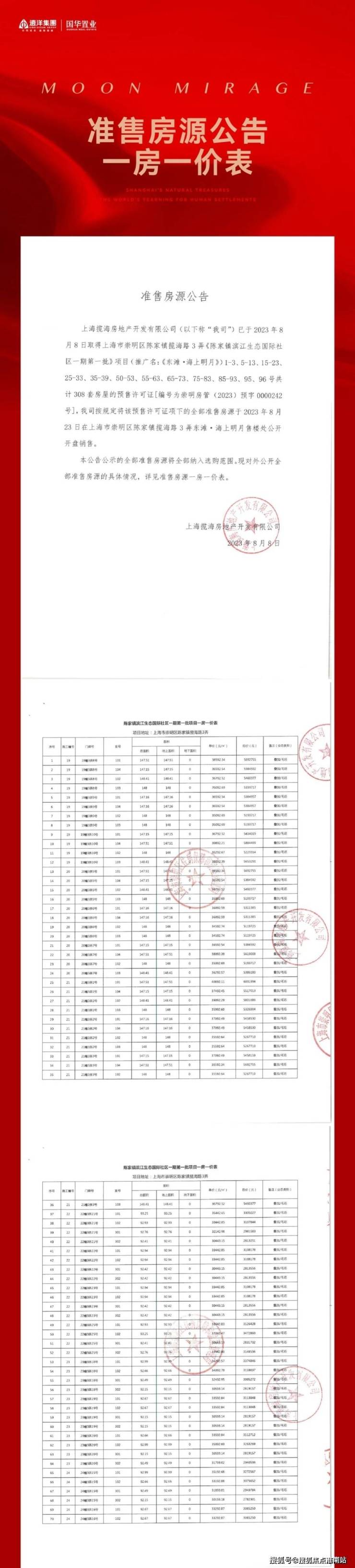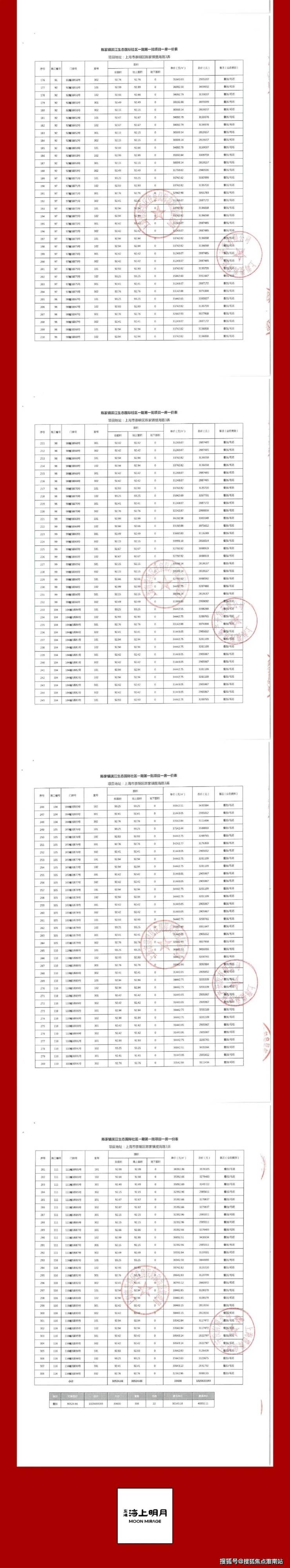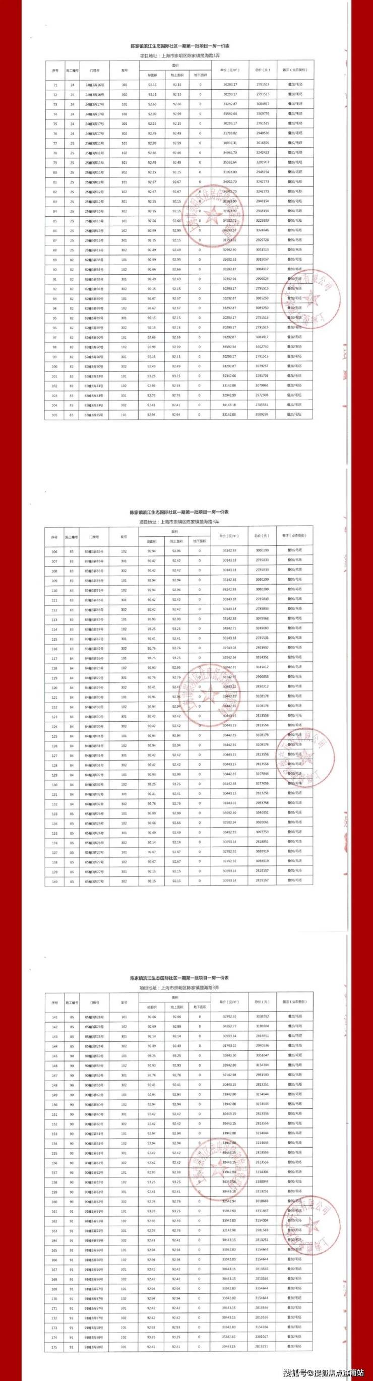 一房一价表公示: