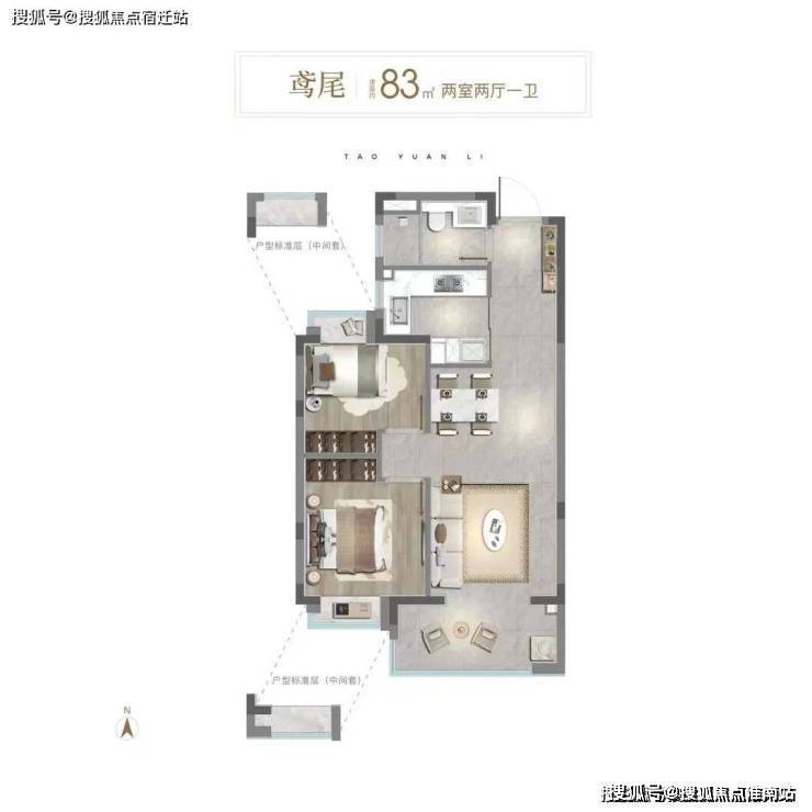 建面约83㎡2房,可谓久旱逢甘霖的产品,给单身/小两口/老夫妻以及其它成员结构简单的家庭提供了功能更合适、价格门槛更适宜的产品!