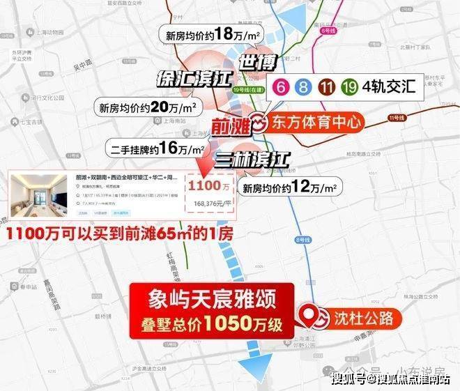 我们来看这条黄金轴的房价,世博新房18万以上,徐滨20万左右,千万预算似乎连门槛都摸不到。