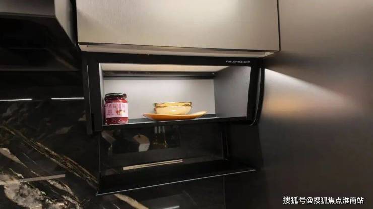 在厨房窗户旁的吊柜中,一般这种角落位置取东西不太方便,因此此处做了一个下拉篮。