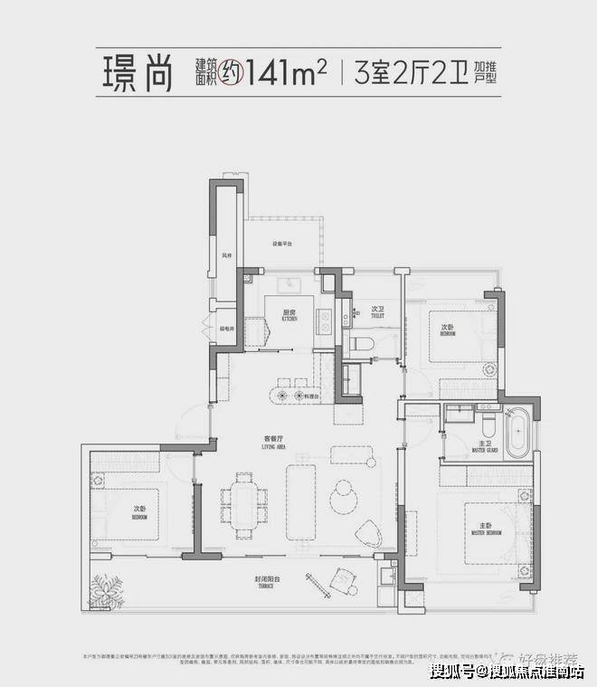 户型特点:大面宽设计,采光通风良好,部分户型有270°环景飘窗、阔绰阳台,如建筑面积约134㎡的户型,南向约13.6m面宽,约9.8m奢阔阳台;建筑面积约184㎡的户型,南向16.4m大面宽,约9.2m宽境阳台。