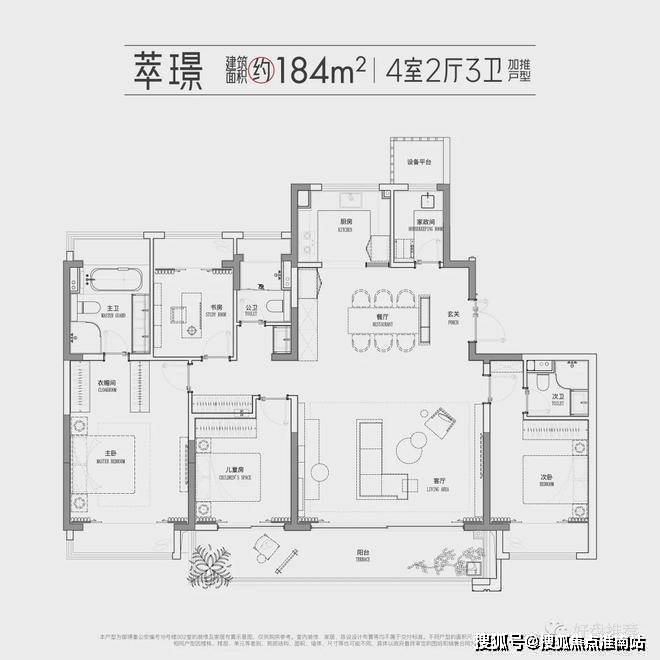 主力户型:建筑面积约134-184㎡,包括4室2厅2卫、3+1室2厅2卫等多种户型。