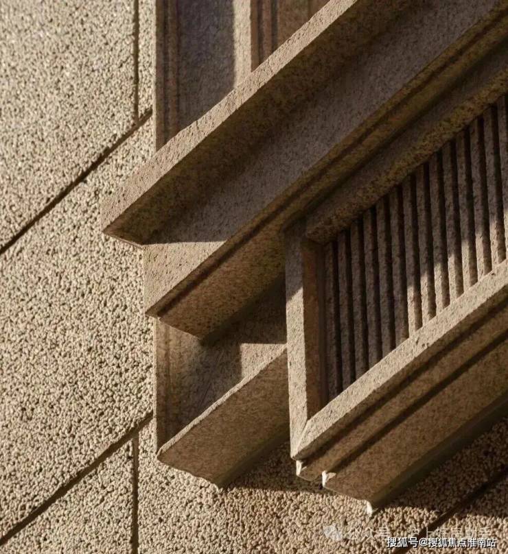 水刷石墙面由匠人甄选石子,匹配颗粒大小,经七道工序及“洗三磨三”处理,以确保颗粒均匀。这种工艺不仅保持了老墙的味道,还增加了防酸防潮功能,适应未来气候变化。
