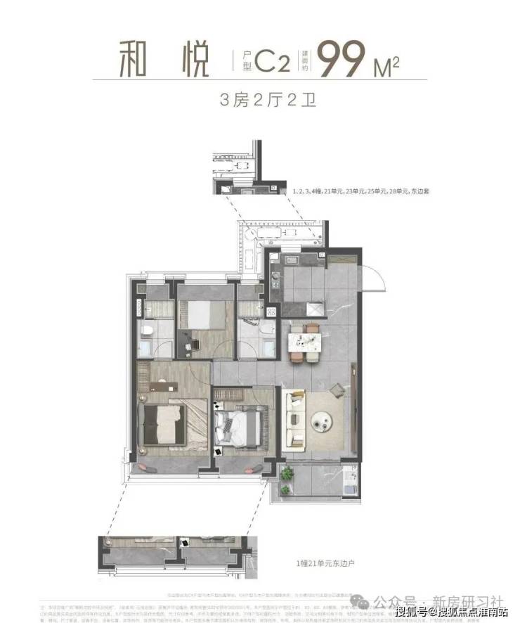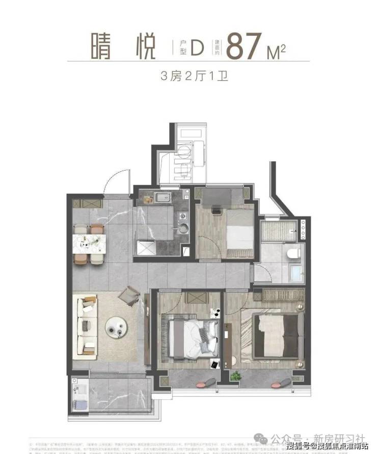 户型:首开将推出建面约87-99㎡3房,均价约7.9万/㎡!