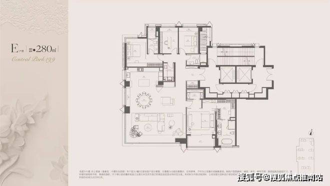 边套户型,典型的豪宅产品,双开门入户,建·玖上琅宸售楼处电话☎:400-9659-259(预约看房热线)十字动线,打造三重归家礼序,双南套房卧室,阔绰边厅,正对下沉庭院与大宁公园,景观视野极佳。