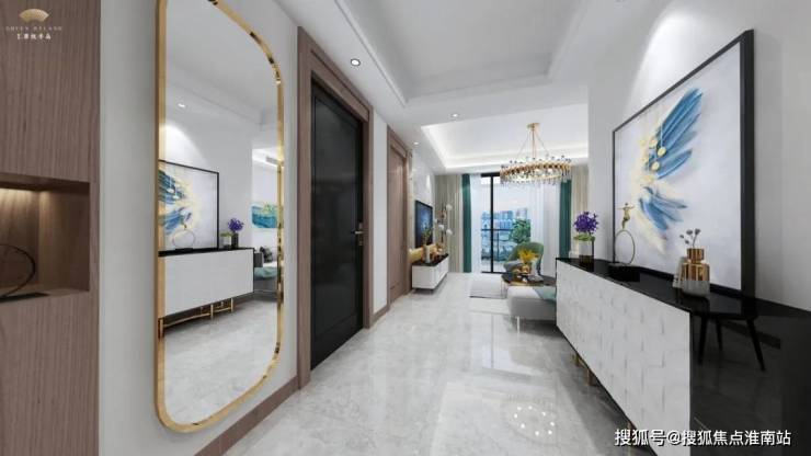 而入户玄关柜,采用了三段式玄关柜设计,上中下各设收纳分区,保持了整个空间私密性的同时,在空间使用率上又做到了合理分配。上层收纳区可用于收纳使用频率不高的家居或换季鞋服;中层物件区悬空并设置了内打灯,可摆放观赏性摆件/家庭相簿、钥匙等小物件,温馨十足;下层常用区可收纳常用鞋、拖鞋等,空间大,可满足全家鞋子收纳需求。