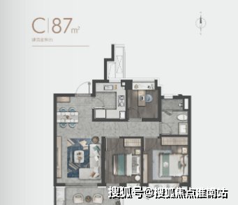 建面约88㎡户型图▼