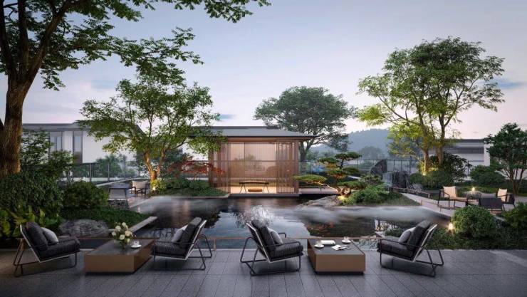 有别于传统中式的冷寂,仙女湖小镇的院墅产品呈现出更为经典的当代感。比如,中式大屋顶抽象为简约轻巧的形态韵味;院墙在保留山地民居情怀的前提下,以石材与玻璃等材质,顺应山势呈现出独特的时代气息;门窗在传统范式基础上,增大了开间尺度,尽可能将阳光与风景迎入室内。