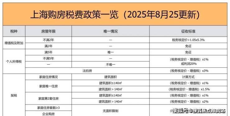 三、上海2025年8月最新购房税费政策